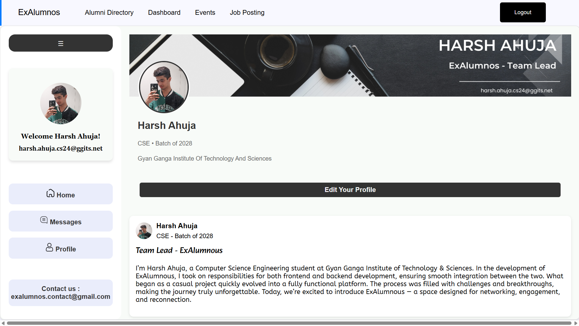 ExAlumnos is an alumni networking platform designed to make it easier for students and graduates to stay in touch, share opportunities, and build lasting connections.